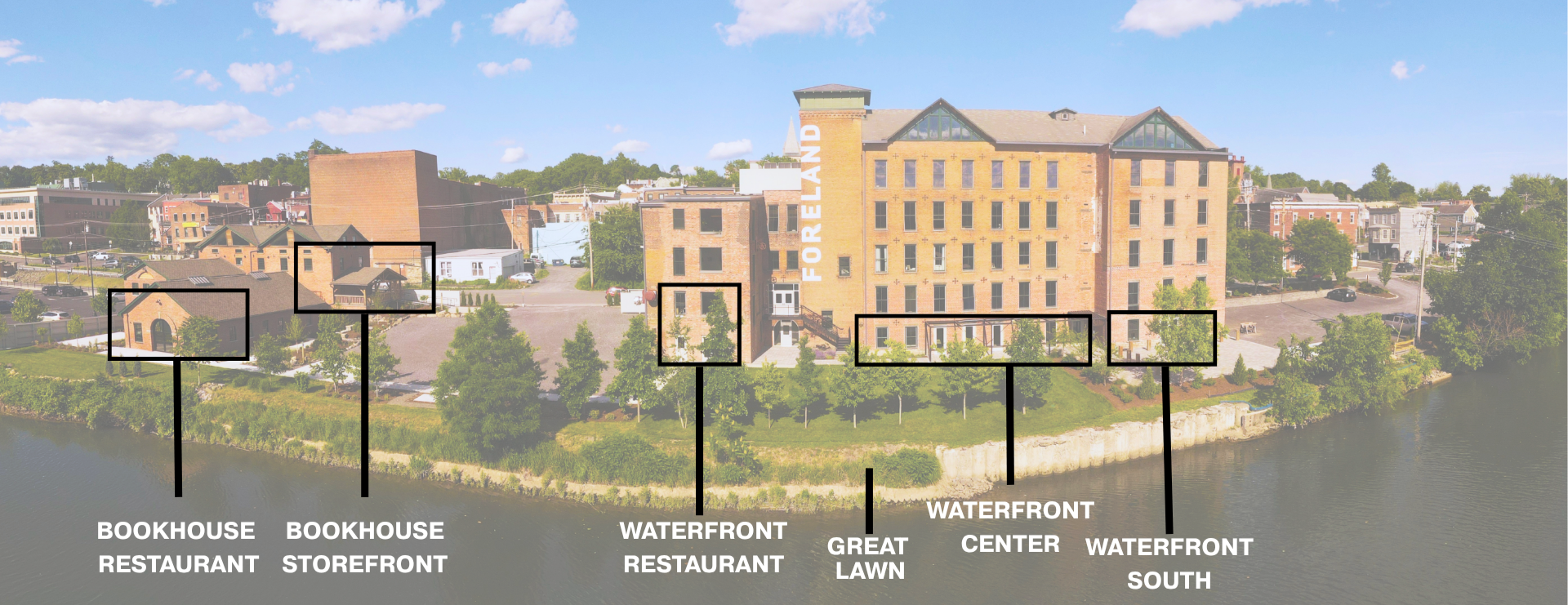 Introducing The Foreland Waterfront, a new commercial district along Catskill Creek that brings together retail, food and beverage, studios, and adaptive reuse spaces in a walkable, waterside setting. Organized around a central lawn and promenade, the Waterfront represents a strategic expansion of Foreland’s long-term vision—transforming underutilized space into a cohesive destination for commerce, culture, and community.