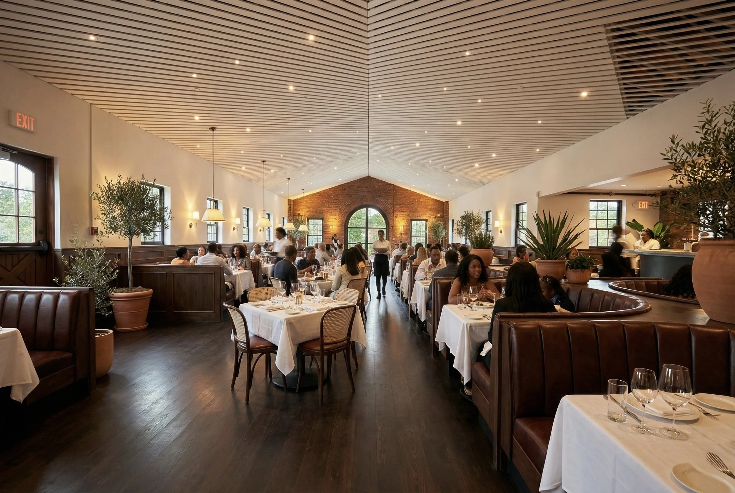 The Bookhouse restaurant space presents an opportunity unlike any other in the Hudson River Valley: a stand-alone, 3,800 square foot restaurant with double-height ceilings, two-story lounge, and 360° views of the village, creek, and surrounding mountains. The space features hand-hewn slat ceilings, original exposed brick, a wraparound bar, custom lighting, and newly-installed modern amenities. A 1,000 square foot patio with private gardens and lawn nestled on Catskill Creek allow for outdoor dining and beverage programs.